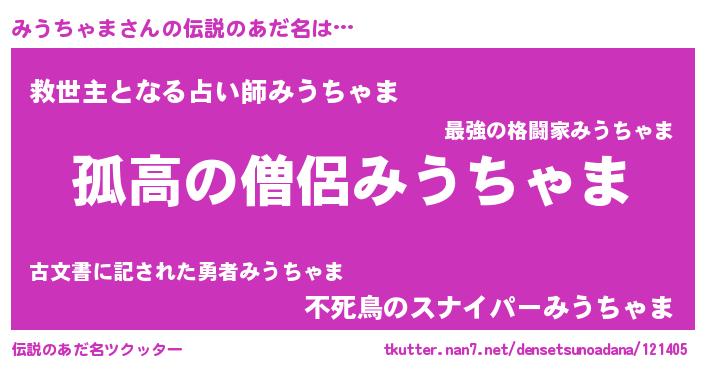 | ヒーロー風カッコイイあだ名 | 『黄金騎士ミウ』『慈愛の使者みうちゃま』 |