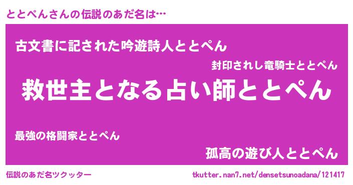 | ヒーロー風カッコイイあだ名 | 『天空の使者ととぺん』『ネオトトペン』 |
