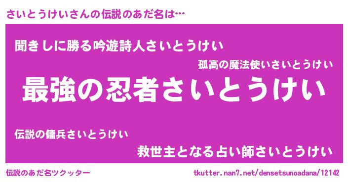 | ファンタジー風あだ名 | 『エターナルサイトウケイー』 |