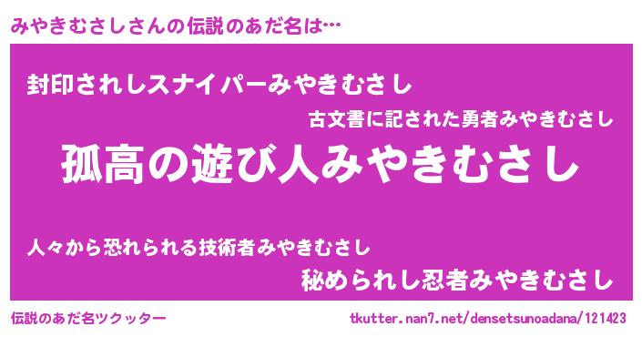 | 意味不明あだ名 | 『とにかく怪しいみやきむさし』 |