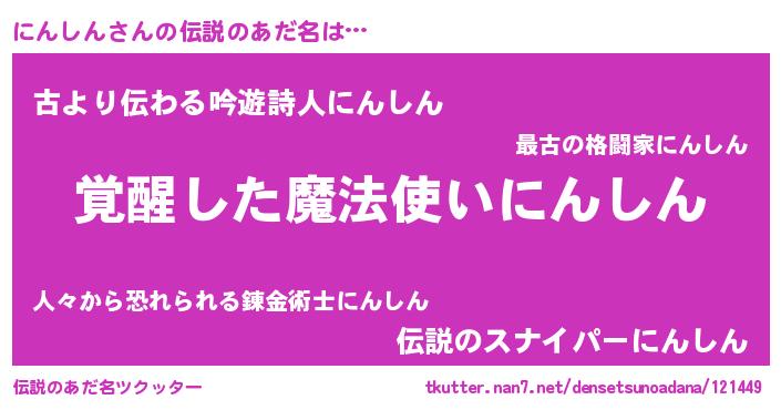 | 男性向けラノベタイトル風あだ名 | 『にんしん~年齢イコール彼女いない歴の魔法使い~』 |