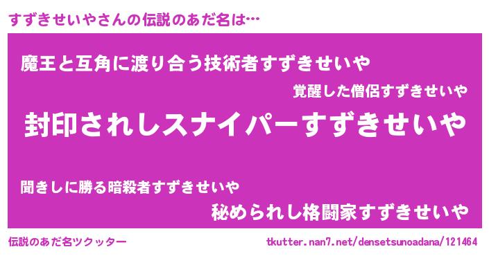 | 欧米人風あだ名 | 『すずきせいや・ステッグマイヤー』 |