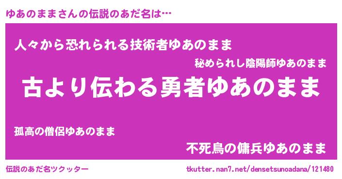 | 意味不明あだ名 | 『永久保存ゆあのまま』『自称ゆあのまま』 |