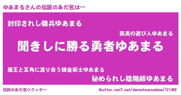 | 欧米人風あだ名 | 『ゆあまる・ステッグマイヤー』 |