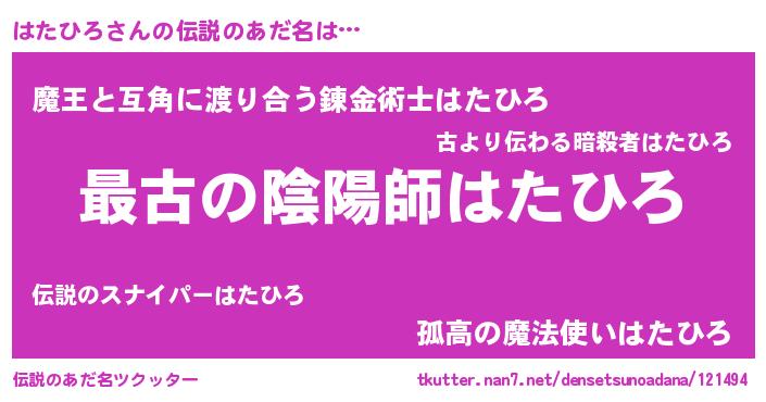 | 意味不明あだ名 | 『はたひろフォーエバー』 |