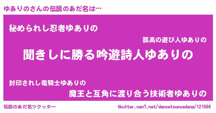 | 意味不明あだ名 | 『永久保存ゆありの』 |