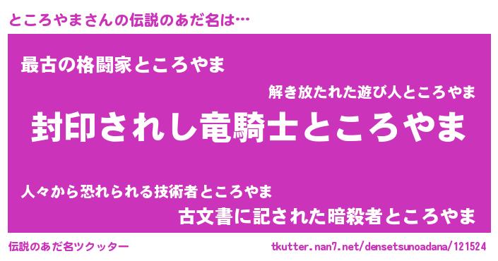 | 胡散臭い通販商品みたいなあだ名 | 『あなたにだけ特別に提供する100年もののヴィンテージワイン…その名も「ところやま」』 |
