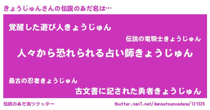 | ヒーロー風カッコイイあだ名 | 『正義の使者きょうじゅん』 |