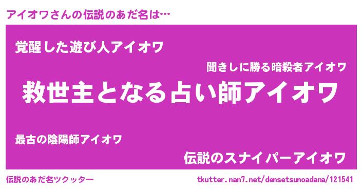 | ヒーロー風カッコイイあだ名 | 『天空の使者アイオワ』『炎刃騎士アイ』 |