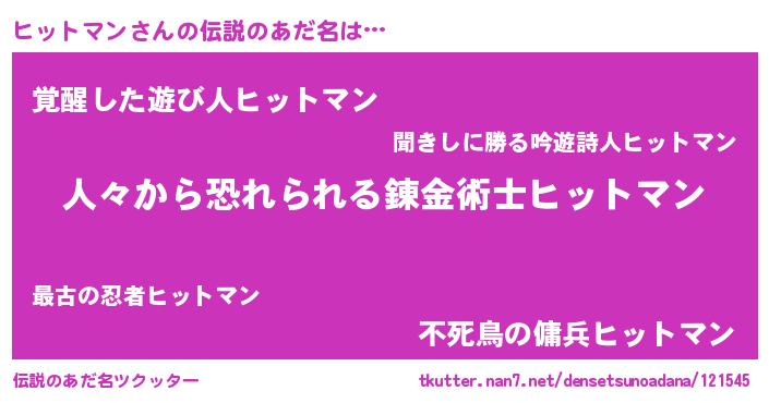 | ヒーロー風カッコイイあだ名 | 『友情の使者ヒットマン』『炎刃騎士ヒッ』 |