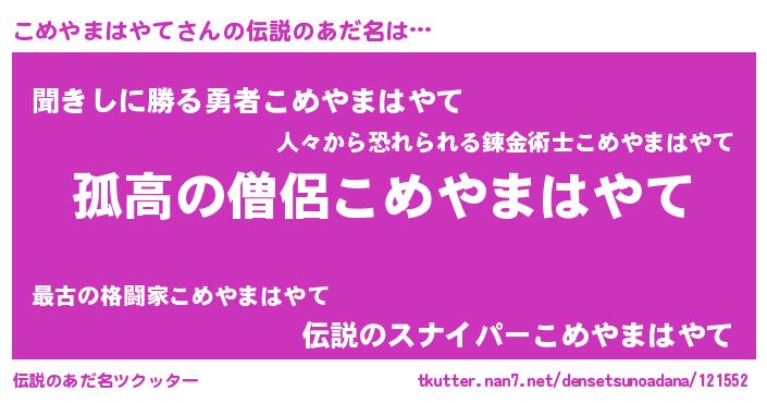| 胡散臭い通販商品みたいなあだ名 | 『信頼と実績のネックレス…その名も「こめやまはやて」』 |