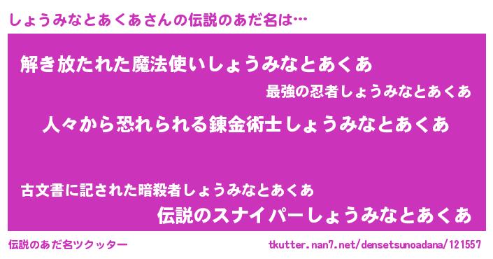 | 料理風あだ名 | 『しょうみなとあくあのトマト煮』 |