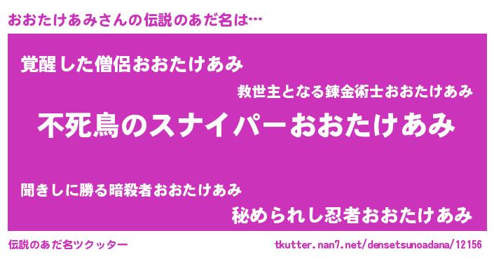 | ヒーロー風カッコイイあだ名 | 『仮面オオダー』『スーパーオオタケアミ』 |