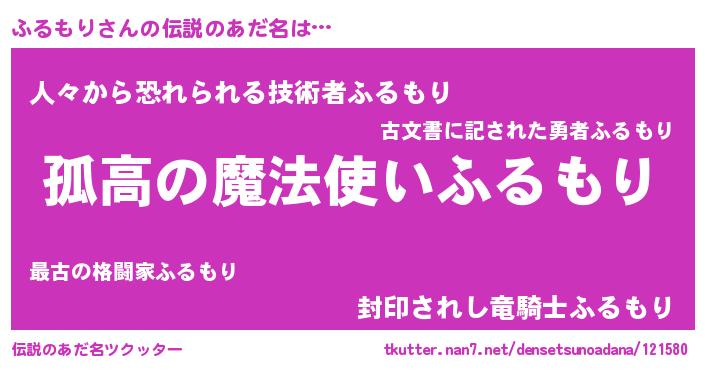 | 胡散臭い通販商品みたいなあだ名 | 『信頼と実績のサプリメント…その名も「ふるもり」』 |