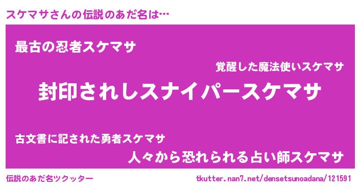| ヒーロー風カッコイイあだ名 | 『スーパースケマサ』『仮面スケダー』 |