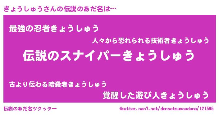 | ヒーロー風カッコイイあだ名 | 『スーパーキョウシュウ』『仮面キョダー』 |
