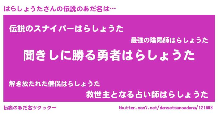 | 意味不明あだ名 | 『永久保存はらしょうた』 |