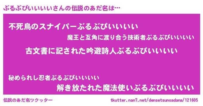 | ヘコむあだ名 | 『ぶるぶぴいいいい(小並感)』『ぶるお』 |