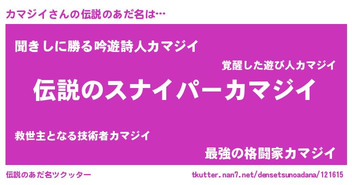 | ヒーロー風カッコイイあだ名 | 『スーパーカマジイ』『ネオカマジイ』 |