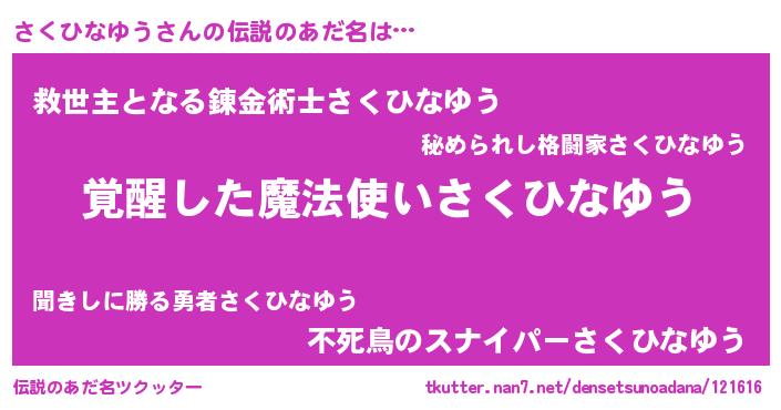 | 意味不明あだ名 | 『自称さくひなゆう』 |