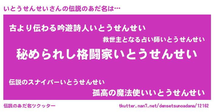 | ファンタジー風あだ名 | 『エターナルイトウセンセイー』 |