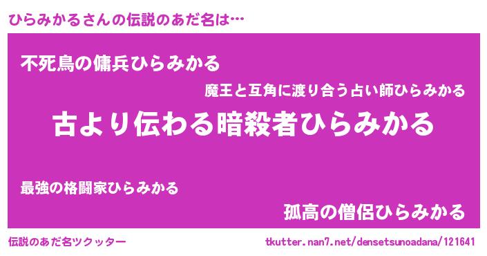 | 胡散臭い通販商品みたいなあだ名 | 『来世でも幸せになれる健康食品…その名も「ひらみかる」』 |
