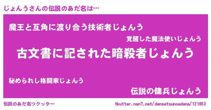 | 胡散臭い通販商品みたいなあだ名 | 『前代未聞の健康食品…その名も「じょんう」』 |