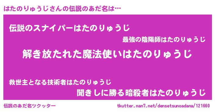 | 意味不明あだ名 | 『自称はたのりゅうじ』 |