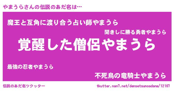 | ヒーロー風カッコイイあだ名 | 『天弓騎士ヤマ』『正義の使者やまうら』 |