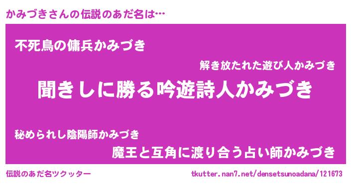 | 意味不明あだ名 | 『住所不定無職かみづき(6歳)』 |