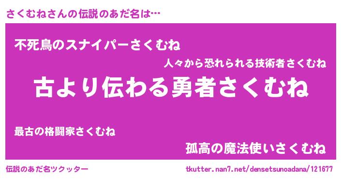 | ヒーロー風カッコイイあだ名 | 『サイバー戦士サクムネ』『仮面サクダー』 |