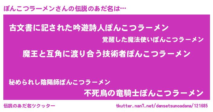 | 胡散臭い通販商品みたいなあだ名 | 『テレビで話題の高麗人参…その名も「ぽんこつラーメン」』 |