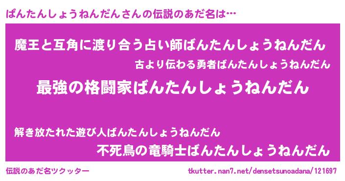 | 意味不明あだ名 | 『ばんたんしょうねんだんフォーエバー』 |
