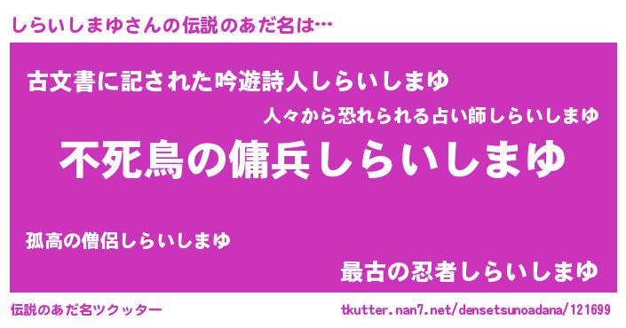 | ヒーロー風カッコイイあだ名 | 『スーパーシライシマユ』『仮面シラダー』 |