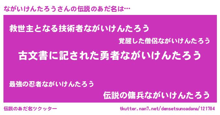 | ヒーロー風カッコイイあだ名 | 『ネオナガイケンタロウ』『炎刃騎士ナガ』 |
