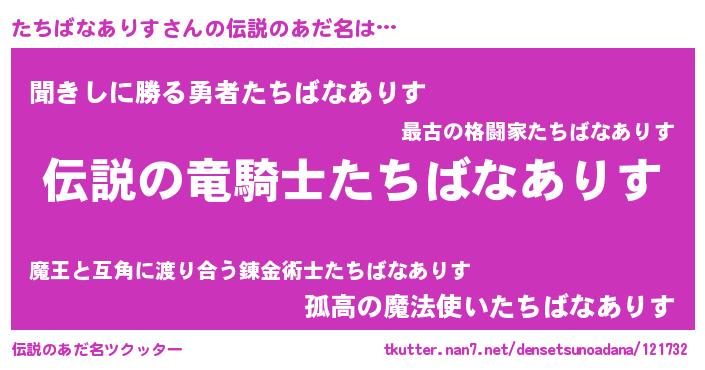 | ヒーロー風カッコイイあだ名 | 『スーパータチバナアリス』 |