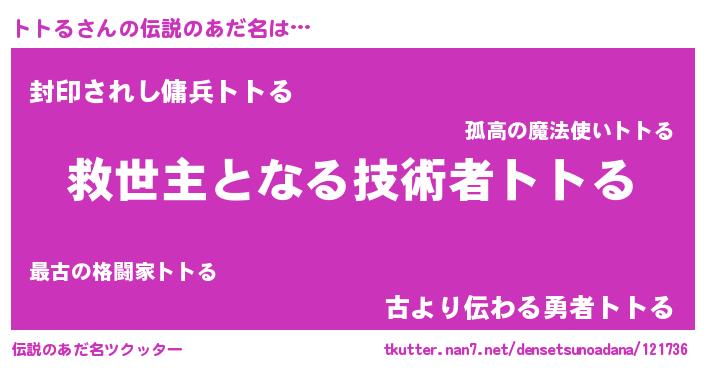 | ヒーロー風カッコイイあだ名 | 『慈愛の使者トトる』『スーパートトル』 |