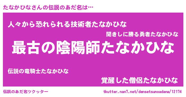 | ファンタジー風あだ名 | 『エターナルタナカヒナー』『ゼタナトゥ』 |