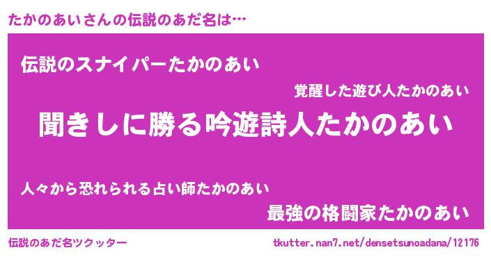 | ヘコむあだ名 | 『たかのあい(小並感)』『たかもー』 |