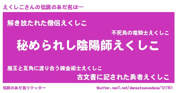 | 意味不明あだ名 | 『自称えくしこ』『えくしこフォーエバー』 |