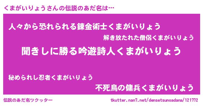 | 意味不明あだ名 | 『永久保存くまがいりょう』 |