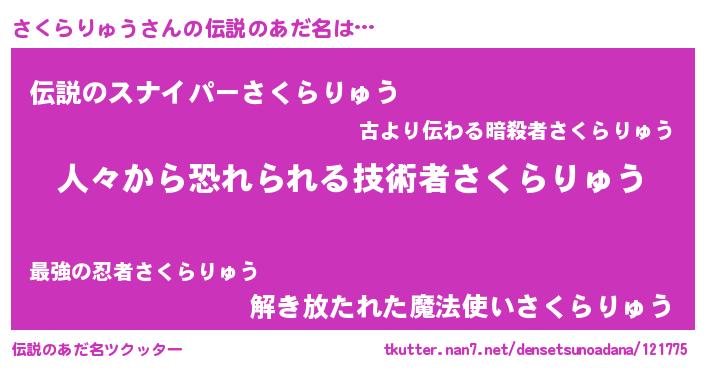 ヒーロー風カッコイイあだ名 | 『正義の使者さくらりゅう』 |
