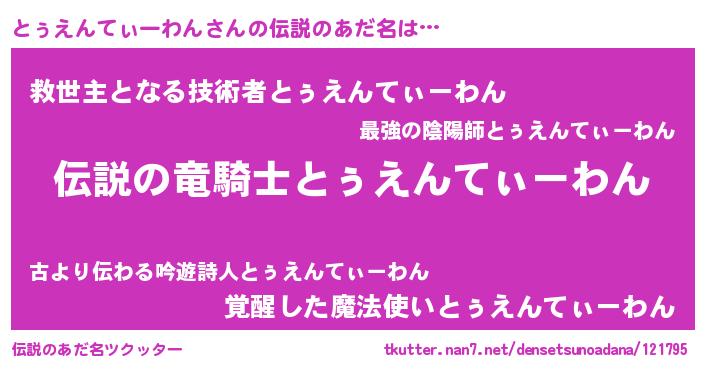 | 男性向けラノベタイトル風あだ名 | 『とぅえんてぃーわんの憂鬱』 |