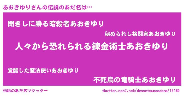 | ヒーロー風カッコイイあだ名 | 『正義の使者あおきゆり』『暗黒騎士アオ』 |