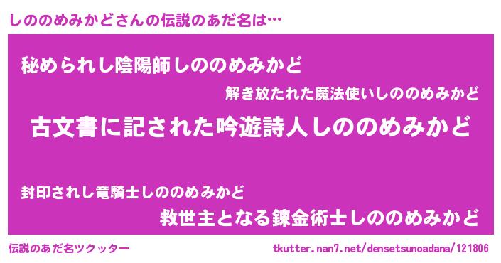 | 意味不明あだ名 | 『永久保存しののめみかど』 |