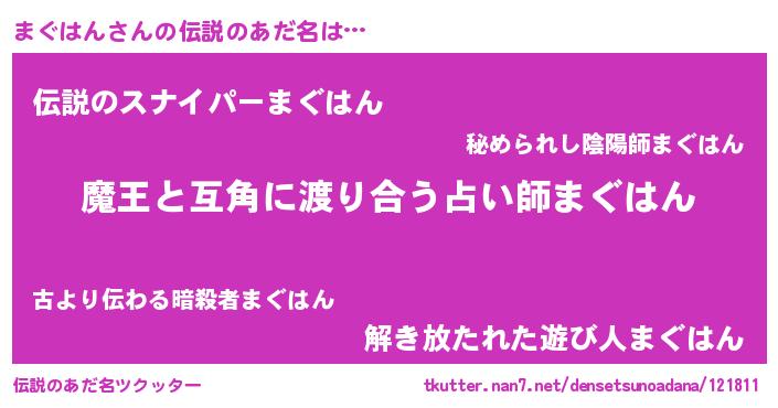 | 男性向けラノベタイトル風あだ名 | 『ノーゲーム・ノーマグハン』 |