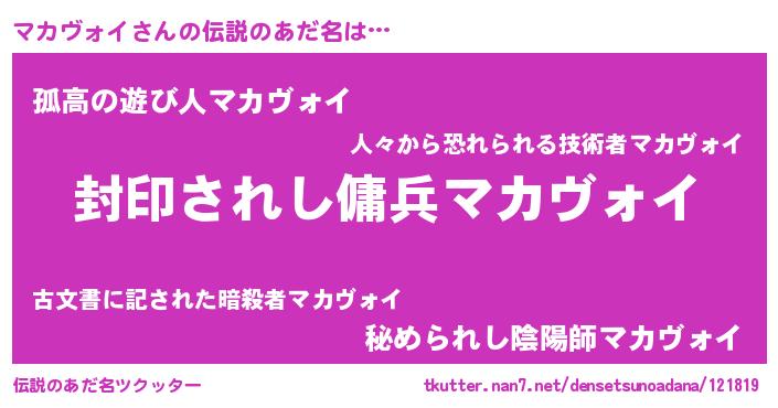 | 胡散臭い通販商品みたいなあだ名 | 『あなたにだけ特別に提供する限定10本のレアな日本酒…その名も「マカヴォイ」』 |