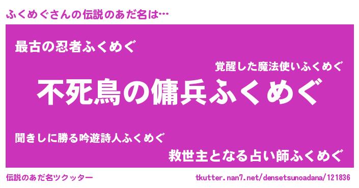 | 意味不明あだ名 | 『なめこ科ふくめぐ属』『自称ふくめぐ』 |