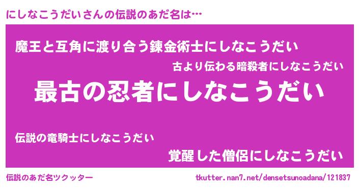 | 料理風あだ名 | 『にしなこうだいごはん』 |