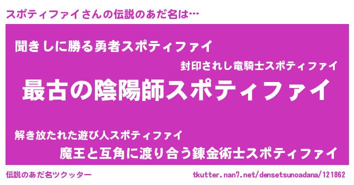 | 意味不明あだ名 | 『自称スポティファイ』 |
